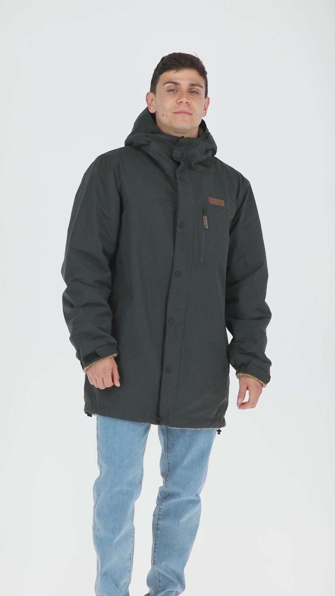 Parka impermeable 5.000/10.000 con costuras termoselladas y cierres secos, también es reversible. Lado A impermeable, lado B con Chiporro.