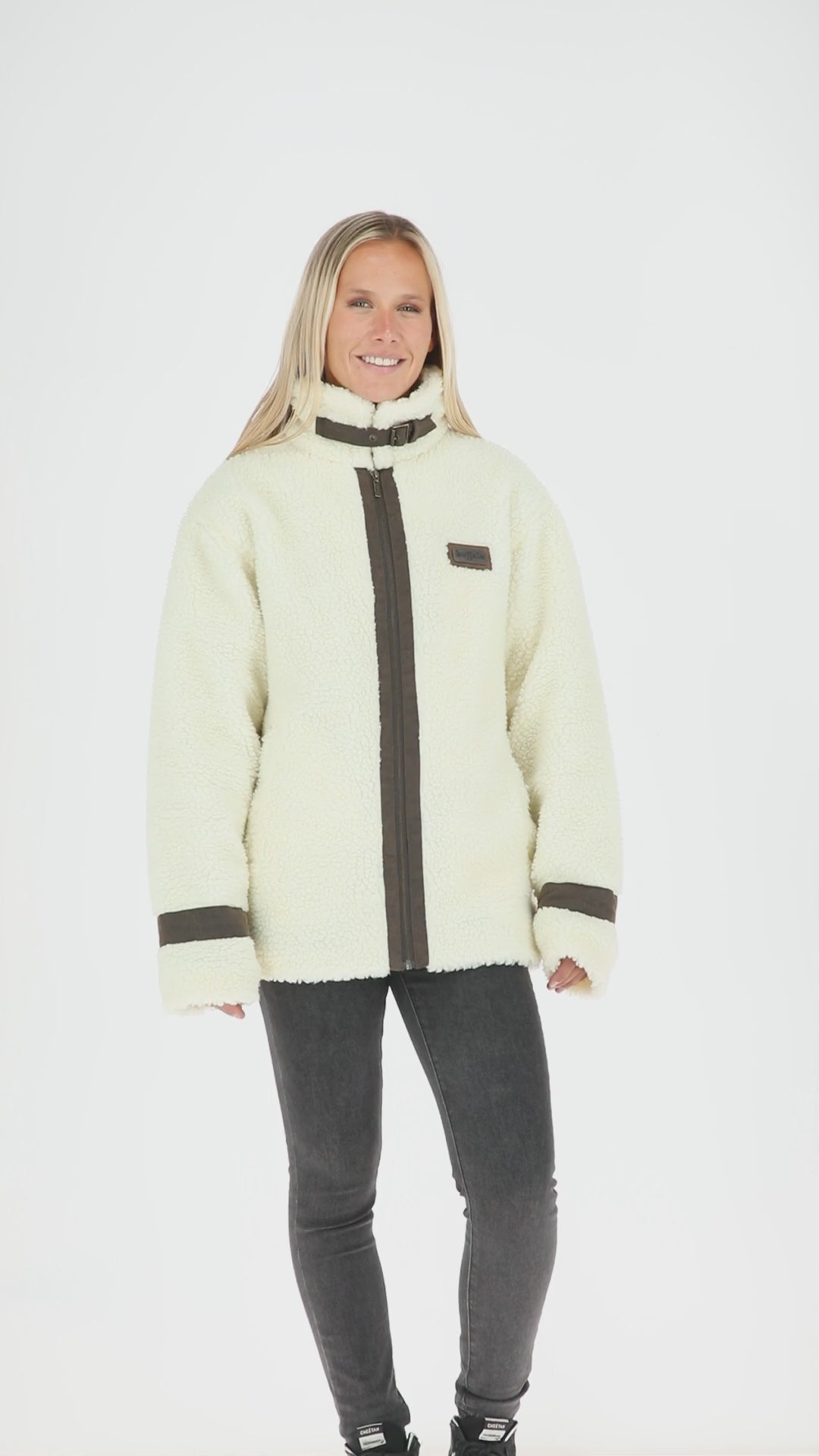 Chaqueta de chiporro con correas de PU, muy resistente, con acolchado térmico en interior, calce oversize.